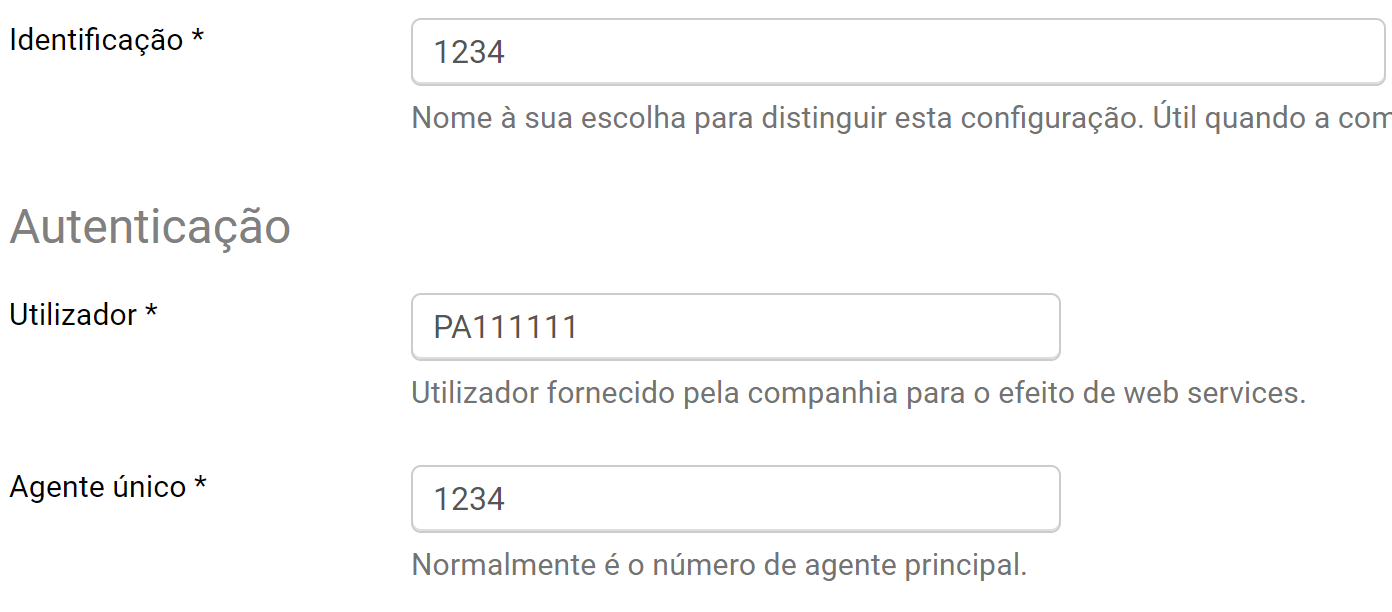 - Preencher a informação de autenticação conforme enviada pela companhia como no exemplo seguinte: